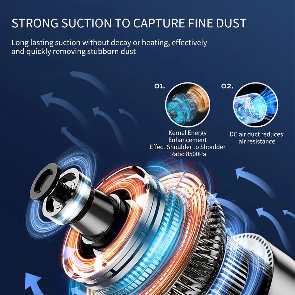 Ky aspirator i mundshëm prej 120W vjen me motor ultra-efikas, duke marrë suction më të fortë se shumica e makinave të aspiratorëve . Thith me pak flokë, pluhur, grimca, ushqim, rërë , dhe çdo shtëpi tjetër — në makinë, divan, dyshek, tastierë kompjuteri edhe madje qoshe të rregulluar.